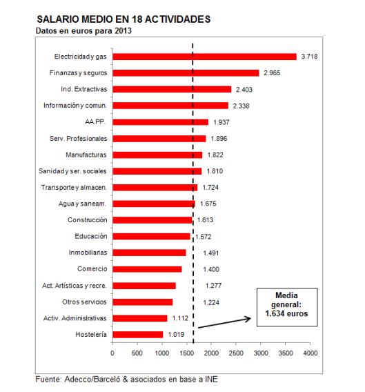 Y evidentemente, en cada sector económico las retribuciones son muy diferentes, produciendo diferencias de calado entre los salarios percibidos por los trabajadores de cada sector.